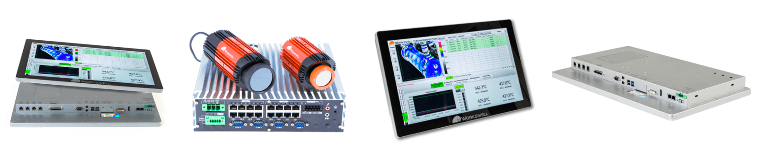 Workswell ThermoInspector – вимірює, записує та аналізує теплову інформацію в режимі реального часу, бездоганно інтегрується в існуючі системами керування технологічними процесами та ПЛК. Система підтримує до чотирьох високочутливих інфрачервоних камер, здатних виявляти незначні коливання температури (краще 0,03°C) та вимірювати температуру до +1500°C. Це дозволяє здійснювати безперервний та точний моніторинг теплових полів на різних матеріалах.