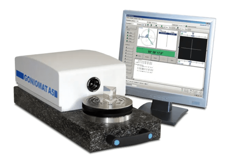 Повністю автоматичний гоніометр GONIOMAT A5, розроблений на основі лінійки продуктів GONIOMAT M з ручним управлінням, є таким же зручним, компактним та гнучким. GONIOMAT A5 не потребує стисненого повітря для досягнення точності вимірювання 1,0 кутової секунди. Зручне керування здійснюється за допомогою перевіреного програмного забезпечення GONIOMATIK.
